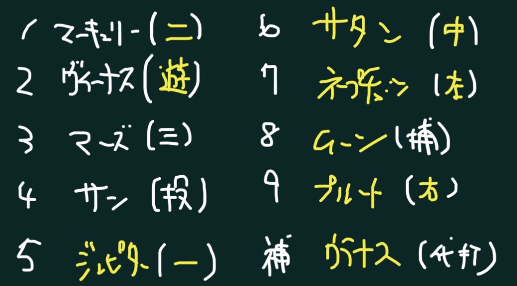 と題しまして、勝手ながら、西洋占星術における惑星のキャラクターと野球の打順のイメージを照らし合わせる遊びをしたいと思います!