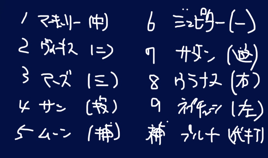 代打の切り札のウラナス(天王星)は、意表をつくスクイズやバスターなどトリックスターで、チャンスで出したら作戦の幅が一気に広がるという狙い。どうですか?なかなかイイ感じじゃないですか我ながら?