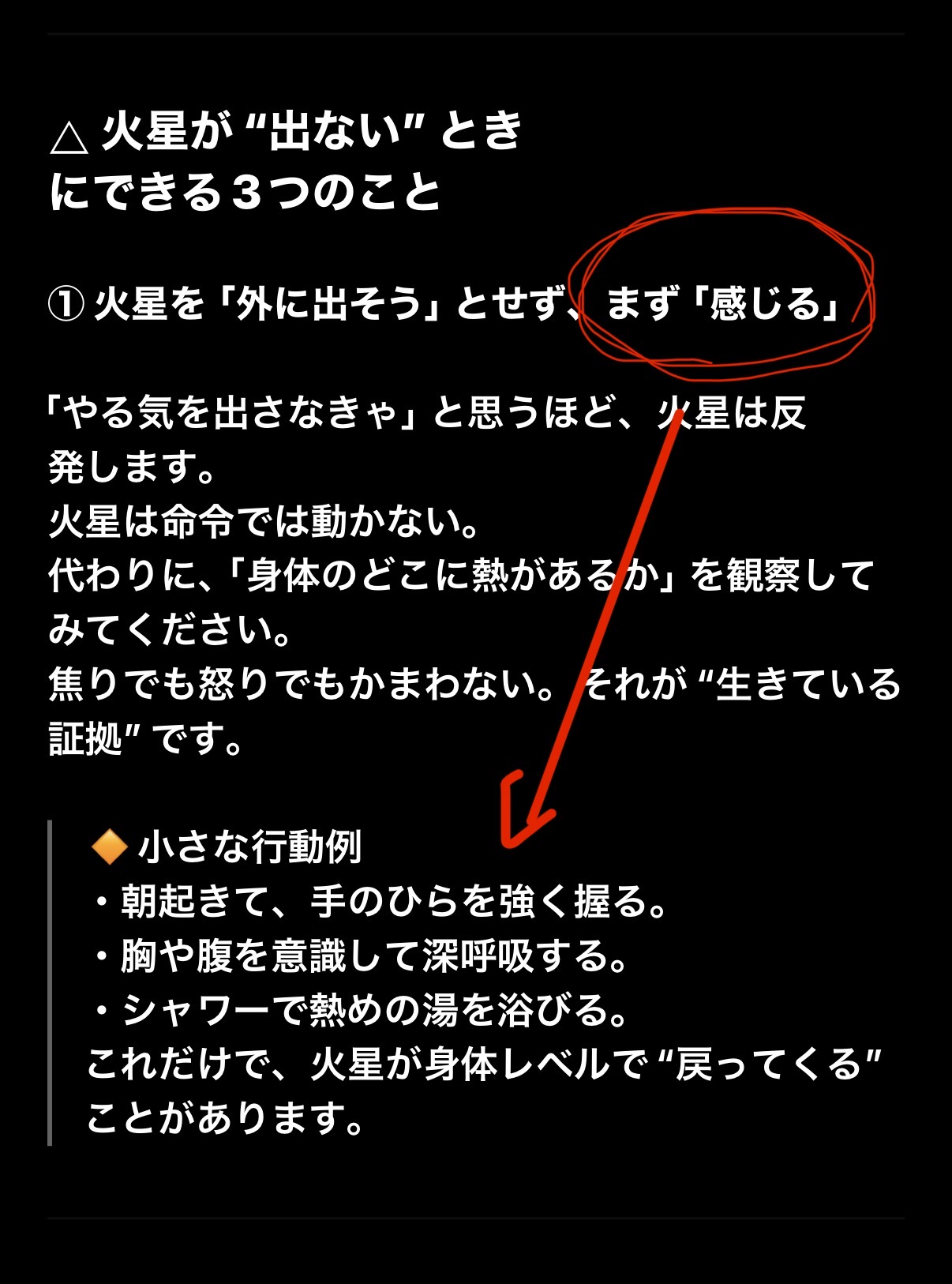 - その上でまず重要なことは、内なる火星のパワーを「感じる」😌ことである。