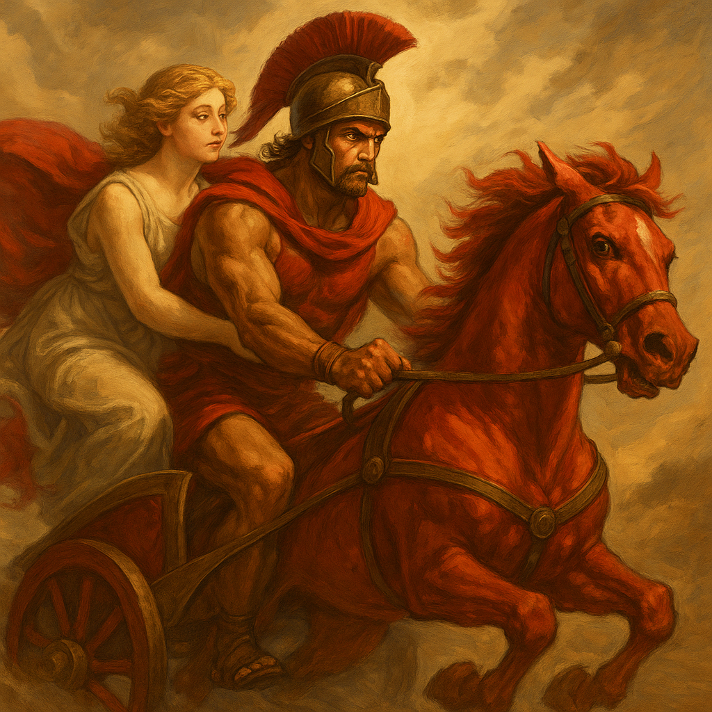 イメージ的には、「ヴィーナスを乗せて走るアレス」か笑